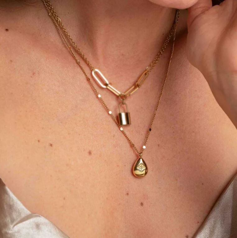 - Collier sur chaîne en acier inoxydable composé d'un pendentif goutte étoilé serti d'un oxyde de zirconium.