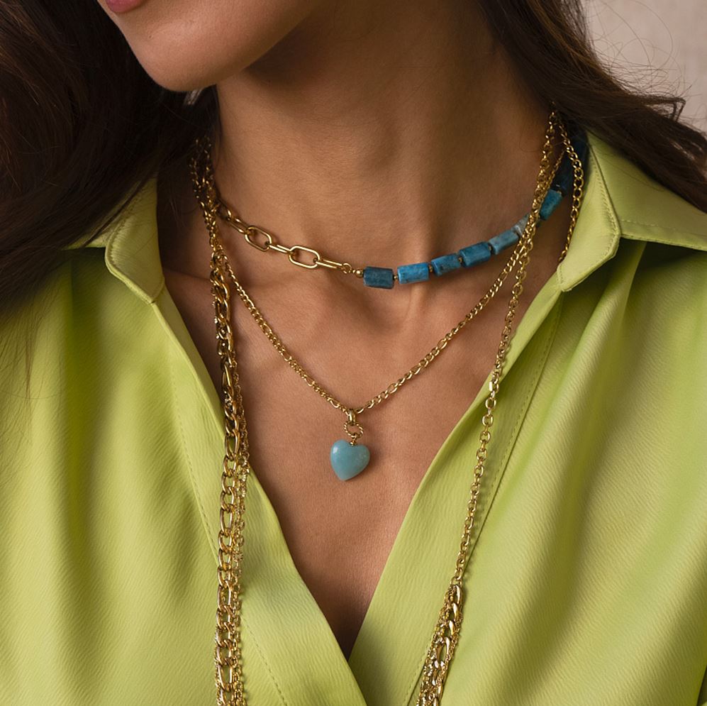 - Collier en acier inoxydable composé d'un coeur en pierre naturelle.